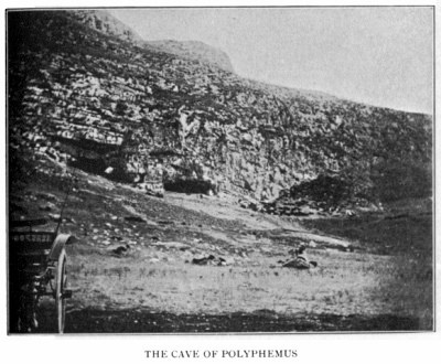 "We soon reached the cave, and finding that the owner was 216 not at home we examined all that it contained; we saw vessels brimful of whey, and racks loaded with cheeses: the yards also were full of lambs and kids. My men implored me to let them steal some cheeses, drive off some of the lambs and kids, and sail away, but I would not, for I hoped the owner might give me something.