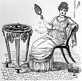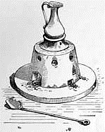 The ancient peoples around the Mediterranean may be excused for not making great progress in the art of heating, for their climate was so mild that they seldom had use for fire in the house. Nevertheless there was in use among these people an invention which has in the course of centuries developed into the stove of to-day. This was the brazier, or warming-pan (Fig. 3). The brazier was filled with burning charcoal and was carried from room to room as it was needed. The unpleasant gases which escaped from the charcoal were made less offensive, but not less unhealthy, by burning perfumes with the fuel. The brazier has never been entirely laid aside. It is still used in Spain and in other warm countries where the necessity for fire is rarely felt.