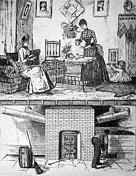 The methods of warming the house and cooking the food which have just been described were certainly crude and inconvenient, but it was thousands of years before better methods were invented. The long periods of savagery and barbarism passed and the period of civilization was ushered in, but civilization did not at once bring better stoves. Neither the ancient Egyptians nor the ancient Greeks knew how to heat a house comfortably and conveniently. All of them used the primitive stove – a fire on the floor and a hole in the roof. In the house of an ancient Greek there was usually one room which could be heated when there was need, and this was called the "black-room" (atrium) – black from the soot and smoke which escaped from the fire on the floor.