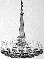 Lamps such as have just been described were used among the civilized peoples of the ancient world, and continued to be used through the Middle Ages far into modern times. They were sometimes very costly and beautiful (Fig. 6), but they never gave a good light. They sent out an unpleasant odor, and they were so smoky that they covered the walls and furniture with soot. The candle was in every way better than the ancient lamp, and after the invention of wax tapers – candles made of wax – in the thirteenth century, lamps were no longer used by those who could afford to buy tapers. For ordinary purposes and ordinary people, however, the lamp continued to do service, but it was not improved. The eighteenth century had nearly passed, and the lamp was still the unsatisfactory, disagreeable thing it had always been.