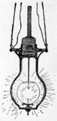 The gas-light proved to be so much better than even the best of lamps, that in towns and cities almost everybody who could afford to do so laid aside the old wick-lamp and burned gas. About 1876, however, a new kind of light began to appear. This was the electric light. The powerful arc light (Fig. 9), made by the passage of a current of electricity between two carbon points, was the first to be invented. This gave as much light as a hundred gas-jets or several hundred lamps. Such a light was excellent for lighting streets, but its painful glare and its sputtering rendered it unfit for use within doors. It was not long, however, before an electric light was invented which could be used anywhere. This was the famous Edison's incandescent or glow lamp (Fig. 10), which we see on every hand. Edison's invention is only a few years old, yet there are already more than thirty million incandescent lamps in use in the United States alone.