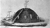 Iron making at first doubtless consisted in simply melting the ore in an open heap of burning wood or charcoal, for charcoal is an excellent fuel for smelting (melting) ores. But this open-fire method was wasteful and tedious and at a very early date the smelting of the ore was done in a rude sort of a furnace. A hole ten or twelve feet deep was dug in the side of a hill. In the hole were placed charcoal and iron ore, first a layer of charcoal, then a layer of the ore. At the top of the mass there was an opening and at the bottom there were several openings. When the mass was set on fire the openings produced a good strong draft, the charcoal was consumed, and the ore was smelted. The product was a lump of wrought iron, known as the bloom.