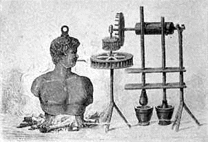 Hero's engine was used only as a toy and it seems to represent all the ancients knew about the power of steam and all they did with it. It is not strange that they did not know more for there is no general rule by which discoveries are made. Sometimes even enlightened peoples have for centuries remained blind to the simplest principles of nature. The Greeks and Romans with all their culture and wisdom were ignorant of some of the plainest facts of science. It is a little strange, however, that after Hero's discovery was made known, men did not profit by it. It would seem that eager and persistent attempts would have been made at once to have steam do useful work, as well as furnish amusement. But such was not the case. Hero's countrymen paid but little attention to his invention and the steam-engine passed almost completely out of men's minds and did not again attract attention for nearly seventeen hundred years.