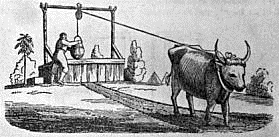 Worcester spent a large part of his fortune in trying to improve the steam-engine, yet he received neither profit nor honor as a reward. He died poor and his name was soon forgotten. His service to the world was nevertheless very great. In his time the mines of England had been sunk very deep into the earth; and the deeper they were sunk the greater was the difficulty of lifting the water out of them and keeping them dry. The water was lifted up from the mines by means of buckets drawn by horses or oxen (Fig. 5). Sometimes it took several hundred horses to keep the water out of a single mine. It was Worcester's object to construct an engine that would do the work of the horses. The engine he built could not do this, yet it furnished the idea – and the idea is often the most important thing. It was not long before engines built upon Worcester's plan were doing useful work at the mines. At the opening of the eighteenth century the steam-engine had been put to work and was serving man in England and throughout the continent of Europe.