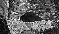 In many regions, especially in parts of northwestern Europe, the wigwam or hut was not always the most suitable dwelling place for early man. In hilly and mountainous districts and along streams where shores were overhung by rocks or pierced by caverns the first inhabitants found that a hollow in the earth was the best kind of house. Sometimes the house of the cave-dwellers was made by Nature (Fig. 2); sometimes it was an artificial living-place dug in the side of a hill or mountain. The cave was truly a rude and gloomy home, yet there was a time when large numbers of the human race lived in caves. The Zuni Indians of Arizona in seeking a refuge from their enemies built their homes far up in steep cliffs where it was almost impossible for a stranger to go.