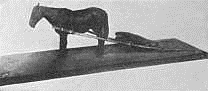 It is often easier to drag a thing along than it is to carry it. This fact led to the invention of what we may call the first and simplest form of carriage. This was the drag or travail (tra-vay´), a cart without wheels (Fig. 3). Two long saplings were fastened at the large end to the strap across the horse's breast and the small end upon which the burden was placed dragged upon the ground. Mr. Arthur Mitchell in his delightful book, "The Past in the Present," tells us that he saw carts of this kind in actual use in the highlands of Scotland as late as 1864! An improvement upon the travail was the sledge made of the forked limb of a tree (Fig. 4). This primitive sledge was really a travail consisting of one piece.