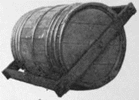In many cases it is easier to roll a thing than it is to drag it. This fact led to another step in the development of the carriage; it led from the cart without wheels to a cart with a wheel – a most important step in the history of inventions. The first wheeled cart was simply a log from each end of which projected an axle (Fig. 5). The axle fitted in the holes of a frame upon which the body of the cart was placed and to which the horse or the ox was attached. As the cart moved along, wheel (log and axle) turned together. The very ancient method of moving a load by rolling it along was in use in the United States not so very long ago. As late as 1860 in some of the southern States hogsheads of tobacco (Fig. 6) were rolled over country roads in the manner just described and as late as 1880 the fishermen of Nantucket used as a fish cart a vehicle that had only a barrel for its wheel. (Fig. 7.) The common wheel-barrow and the one-wheeled carts which are still used in China and Japan had their origin in the rolling log.