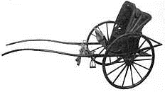 A light running two-wheeled carriage was used by all the civilized nations of the ancient world. Three thousand years ago in the great and wicked city of Nineveh chariots raced up and down the paved streets "jostling against one another in the broad ways, with the crack of the whip, the rattle of the wheel and the prancing of horses." The chariot played an important part in the life of the Greeks and Romans, in their racing contests and in their wars, and throughout the Middle Ages it was the only vehicle in general use in Europe. As time passed it was of course made lighter and stronger and better. The doctor's gig so charmingly described by Holmes in his "Wonderful One Hoss Shay" may be taken as an illustration of the full development of the two-wheeled carriage (Fig. 13).