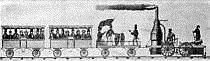 Inventors everywhere put their wits together to construct an engine that would draw a load. The great Watt tried to make one, but having failed, he came to the conclusion that the steam-engine could do good work only when standing still. Among those who entered the contest was Richard Trevithick, a Cornish miner, born in 1771. Trevithick when a lad at school was able to work six examples in arithmetic while his teacher worked one. He proved to be as quick in mechanics as he was in mathematics. He began his experiments with steam when a mere boy, and as early as 1796 he had built a steam-locomotive which would run on a table. By 1801 he had constructed a steam-carriage (Fig. 7). Three years later (1804) Trevithick exhibited a locomotive which carried ten tons of iron, seventy men, and five wagons a distance of nine and one-half miles at the rate of five miles an hour. This was the first steam carriage that actually performed useful work. The honor of inventing the first successful locomotive, therefore, belongs to Richard Trevithick, although he never received the honor that was due him.