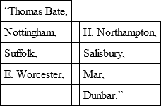 Father Gerard’s comment on this, that the confession of Bates, here referred to, ‘cannot be that afterwards given to the world; for it is spoken of as affording promise, but not yet satisfactory in its performance.’276 Yes; but promise of what? The King, it may be presumed, had asked not merely to know what Greenway had done, but to know what had been the conduct of all the priests who had confessed the plotters. The early part of the minute is clear upon that. Salisbury writes that the King wanted