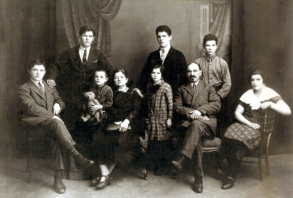 Семья Исаака и Ревекки Штерн. Слева направо стоят: Яков, Николай (Касрил), Александр; сидят: Михаил (Хацкель), Шаха (Соломон), Ревекка, София, Исаак, Геня (Лена). Примерно 1929 г.