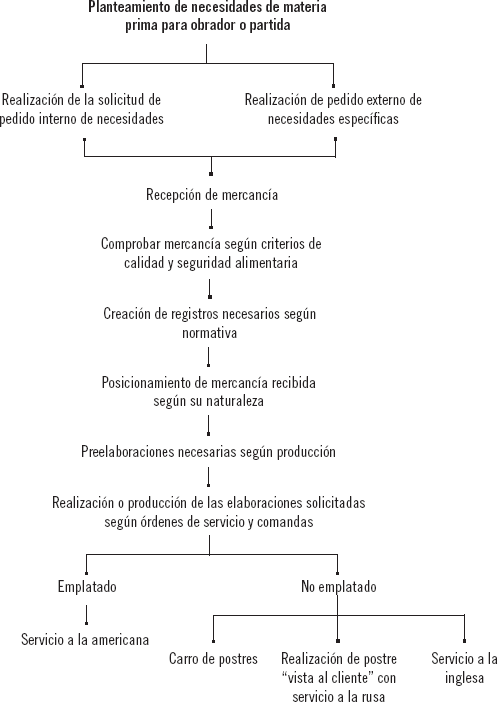Así, se puede establecer que, sea cual sea la elaboración a llevar a cabo, las fases ante la producción de los postres y su servicio serán: