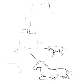 Джоэл заглянул в блокнот. Он наблюдал за Мелоди весь семестр и представлял, что девочка тренируется чертить сложные защиты. Однако Джоэл не увидел на страницах ни линий запрета, ни заградительных дуг, ни даже окружностей! Вместо этого его взору предстали замок и единороги.