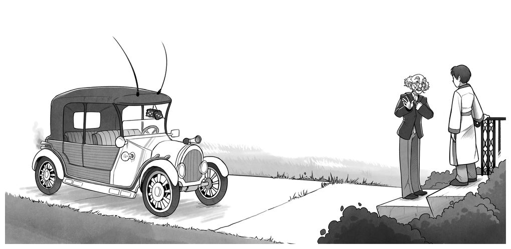 Так вот, машина, которая там стояла, была совсем не такой. Никаких ассоциаций с рухлядью. Бетховен тоже ведь старый композитор, но… почувствуйте разницу. Почувствовали? Вот и я тоже не путаю старое с вечным. Автомобиль был вполне исправен с виду, этакая Жестянка Лиззи[1], если вы, нынешние жители Тихоземья, меня понимаете.
