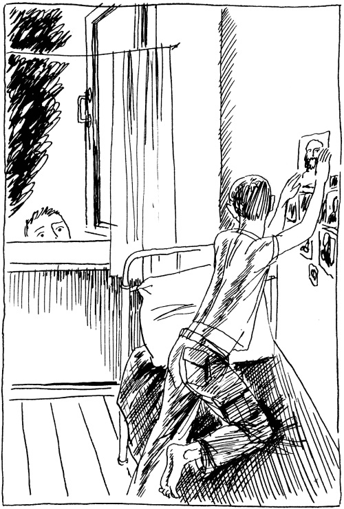 Он прошел в свою комнату и вырезал из журналов наиболее впечатляющие, по его мнению, снимки. Затем снял со стены оставшуюся от прежних хозяев старинную икону, стянул из папиной аптечки лейкопластырь и стал расклеивать их над кроватью.