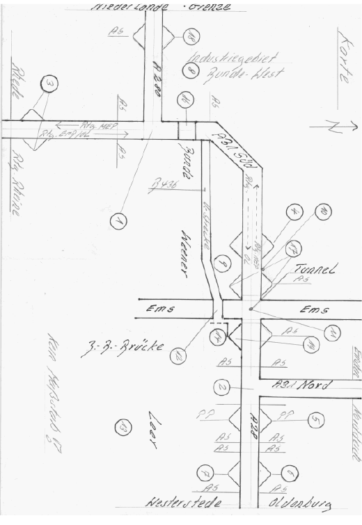 Autobahndreieck Bunde (verlässt man die A31 und folgt der A280 Rtg. Ndl. so fährt man, vor dem Grenzübergang, an der AS Bunde-West vorbei).