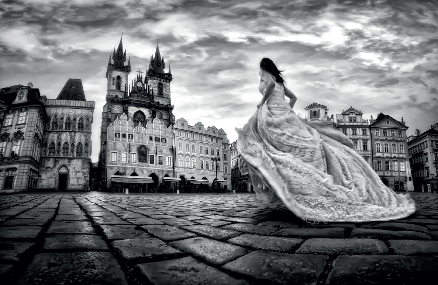La meteorología puede que no le acompañe en el día de la boda, pero ello no le eximirá de su compromiso de obtener buenas fotografías. Aproveche el drama que un día de lluvia puede aportar a las imágenes, como hicieron los fotógrafos de Xpression International en esta fotografía. Mediante el procesado digital compense la suavidad de la luz, convirtiéndola a blanco y negro y añadiendo luminosidad, contraste y enfoque a las zonas que desee destacar. Muestre este tipo de fotografías a las parejas que quieran contratarle para demostrarles que garantiza una buena cobertura en todo tipo de circunstancias.