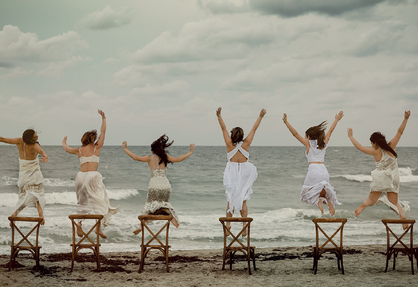 Un retrato de grupo no tiene porqué ser aburrido. Para evitarlo no hay nada mejor que buscar una acción sencilla y pedir a los participantes que la realicen simultáneamente, ya sea dar un paso al frente o saltar desde una silla. Mida la exposición y ajuste su cámara para disparar en modo ráfaga a la máxima velocidad que le permita su cámara. Después elija la mejor toma en la edición y cree una historia divertida en vez de un retrato de grupo convencional. El Marco Rojo.