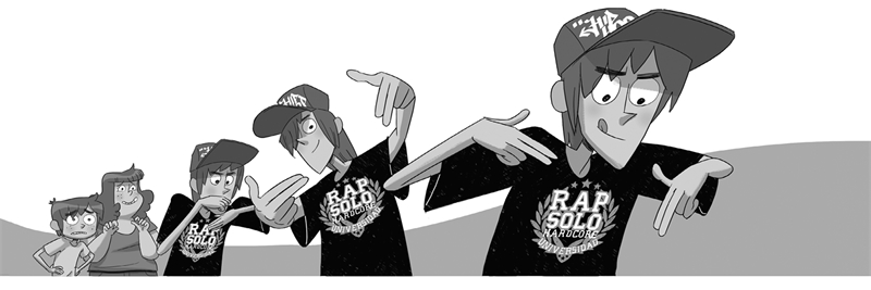 Я уже говорил, что для меня в сто раз лучше, когда они спорят, чем когда они заодно. Короче говоря, с того дня по субботам у нас можно только слушать музыку. И всё. Но мы же не дураки. Слава богу, в других домах таких идиотских правил нет. Поэтому мы начали искать предлоги, чтобы сбежать из дома и забуриться к кому-нибудь в гости. К сожалению, нам это удавалось не всегда. Как в тот полдень, когда мы все вчетвером сидели дома. Мой брат включил на полную громкость какую-то музыку в гостиной. Кажется, это был хип-хоп.