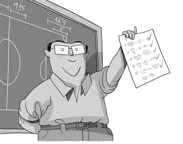 Он нарисовал на доске футбольное поле, задав нам размеры ширины и длины, а затем заставил нас вычислить площадь всего, что на нём было: штрафных зон, вратарских площадок, центра поля, зон, ограниченных окружностями на подступах к штрафной. Даже четвертинок окружностей у угловых флангов. Там было так много вещей, площадь которых нужно было подсчитать, что у меня заболела голова от одной мысли об этом.