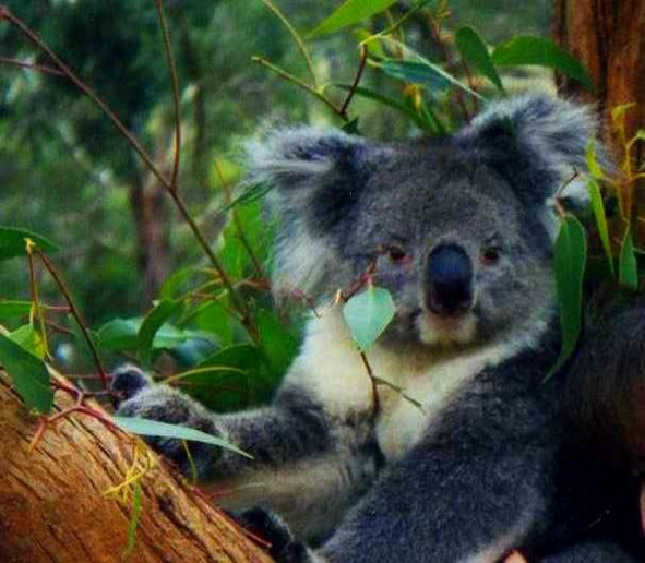 Питаются они исключительно листьями эвкалиптов определённого сорта, в которых содержится какое-то снотворное или даже наркотическое вещество. В результате развалившись на ветках в самых уморительных позах, на вас из полудрёмы лениво погладывают охмелевшие глазки пушистых «наркоманов». Из 24 часов они бодрствуют в среднем только четыре. Кстати, коалы почти не пьют воду. Этот феномен объясняет происхождение слова «коала». На языке австралийских аборигенов оно означает «непьющие».