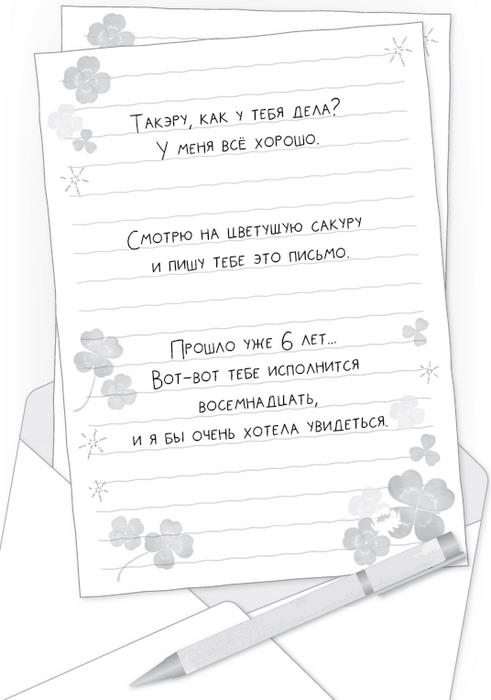 Иногда ответ от Такэру приходил в течение недели, а иногда через целый месяц или даже два. Но самый большой перерыв был весной, когда Такэру перешел в старшие классы. Я волновалась, что с ним случилось что-то плохое, и когда спустя пять месяцев все-таки получила ответ, вздохнула с облегчением.