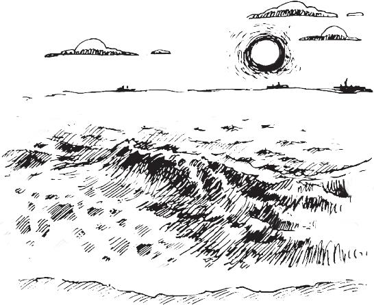 Вдруг золотом вспыхивает край неба, и прямо к моим ногам пробегает золотистая дорожка, как драгоценная лестница в небеса.