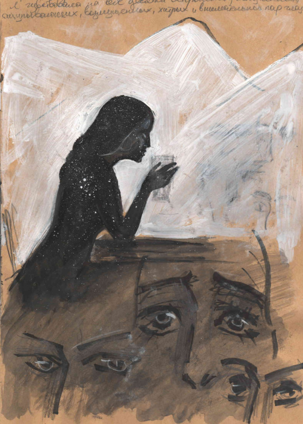 – Извините, мне нужно выйти. Я не настроена, не тратьте попусту вечер, – говорю я едва слышно, резко встаю из-за столика и быстрым шагом иду в уборную. Мимо меня проходит официантка с подносом с наполненными бокалами. Посмотрев на меня, она вдруг теряет равновесие, спотыкается, поднос выскальзывает из её рук и с грохотом падает на пол. Официантка вскрикивает, но её заглушает звон стекла. Часть красно-коричнево-белых капель попадает на моё платье. Благо оно чёрное. Чертыхнувшись, я захожу в уборную и смотрю на себя в зеркало. Щёки горят, несколько прядей выбились из причёски. Я зажмуриваюсь и снова вижу картину: горная местность, снег, множество тепло одетых людей и несколько собак бредут по сугробам. В руках у них фонарики, они что-то ищут. Возможно, того альпиниста. Лица их задумчивы и сосредоточенны. Собаки тщательно обнюхивают землю, вдруг одна останавливается, лает и быстро-быстро начинает рыть передними лапами снег. Я буквально подползаю к умывальнику, включаю воду, и её холодное прикосновение к лицу приводит меня в чувство. Вдруг дверь кабинки открывается и оттуда выходит женщина в белом платье, которая сидела за столиком неподалёку. Она смачно выругалась, глянула на меня, замешкалась, но тут же прищурилась и спросила каким-то неестественно льстивым голосом: