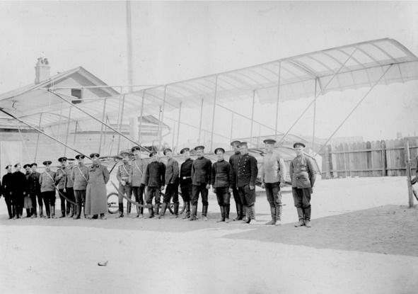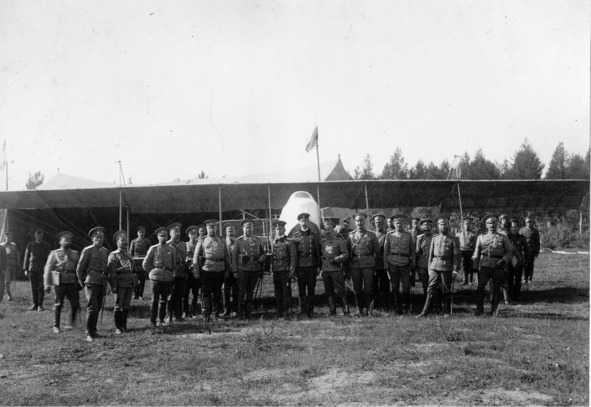 4-й Сибирской воздухоплавательной роте на фоне аэроплана