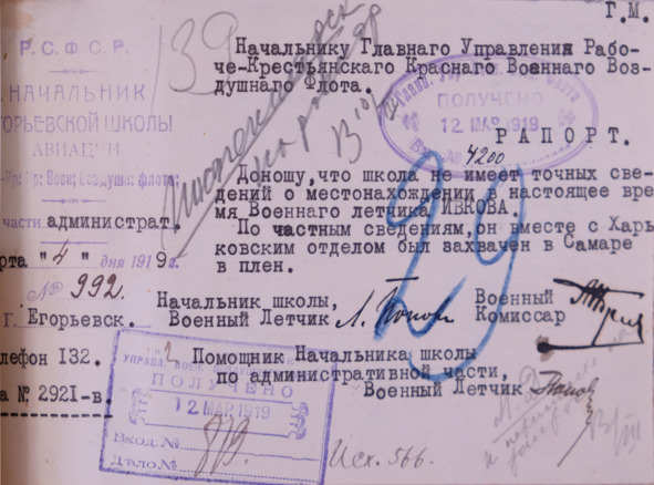 С 1 октября 1915 года поручик Ивков стал офицером-инструктором Гатчинской Военной авиационной школы, с 7 июня 1916 года заведовал ее отделом по обучению полетам нижних чинов. [21]
