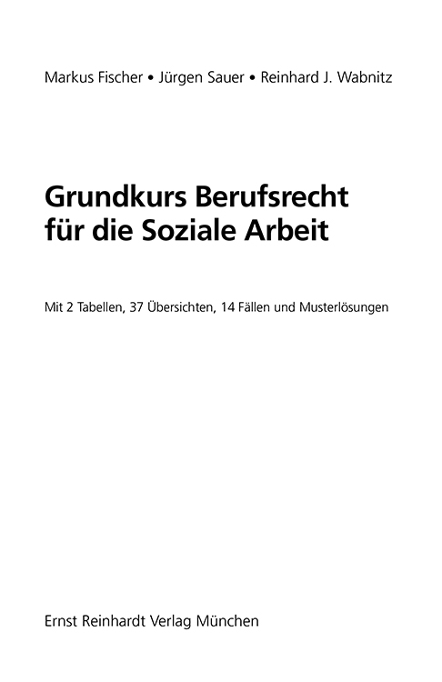 Studierende werden mit Übersichten, Fällen und Musterlösungen auf ihre Rechte und Pflichten in der späteren beruflichen Praxis und auf Modulprüfungen vorbereitet. Sozialarbeiterinnen und Sozialarbeitern bietet der Grundkurs einen Ratgeber für berufsrechtliche Fragen.