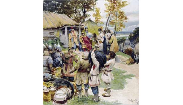 Вдова Игоря княгиня Ольга отомстила древлянам, восстановила дань, но ограничилась ее регламентацией, устройством опорных пунктов полюдья. Дальнейшее расширение территории государства произошло в результате завоевательных походов ее сына Святослава.