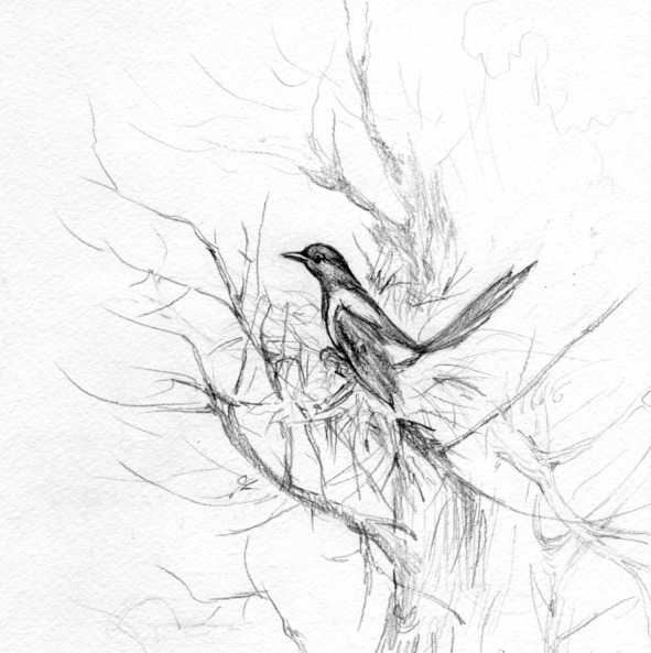 Тишина сделала лишь несколько шагов, но тут же на ветке завозилась какая-то чёрная птица, пробежала лиса, мелькнул её рыжий хвост и исчез в зарослях бересклета. Полетел лёгкий снежок. И быстро стало светать.