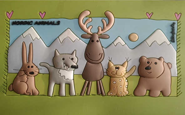 На шведском магните заговорили северные звери! Там так и написано «NORDIC ANIMALS». На фоне белоснежных гор на зелёной траве сидят заяц, рысь, лось, волк и медведь. Да-да, это они!