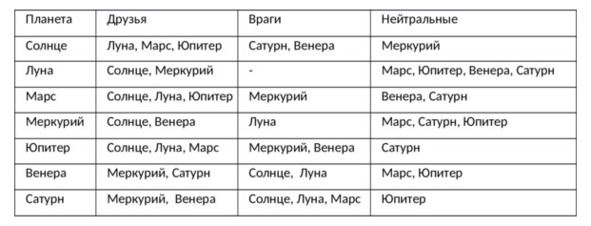 Планеты также можно разделить на добрые и злые. К добрым планетам относятся Юпитер, Венера, растущая Луна и Меркурий (если он один или в соединении с доброй планетой).