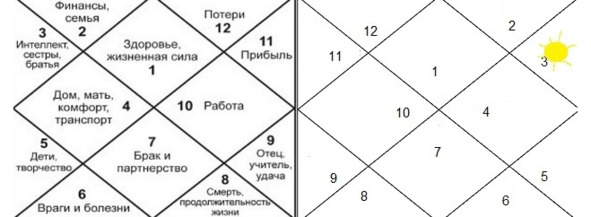 Если натив, например, родился утром с 10 до 12 часов, его Солнце находится в «индийском варианте» – в 11 доме. Как мы уже знаем, 11 дом – темный, ночной. Время зажигать свечи – с 2 до 4 ночи. Но из рисунка видно, что солнце активно жарит – какие свечи?