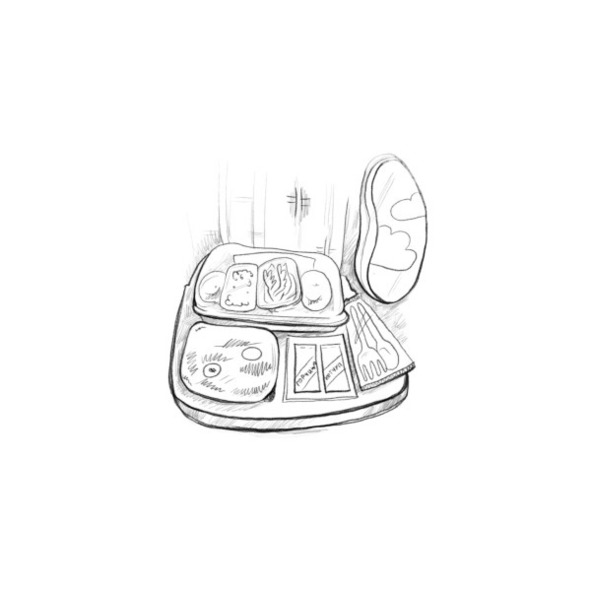 Стюардессы разнесли всем воду и сок в бумажных стаканчиках. Мы выдули по два стакана яблочного. Потом всем раздали яркие коробочки, в которых было упаковано много всякой еды (и даже вафля в шоколаде), а в довершение принесли чай.