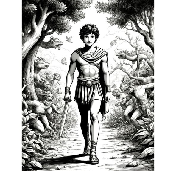 Расскажу вам теперь, как отважный ТесейДобивался намеченной цели своей.Срок настал – и отцовский завещанный мечИз-под тяжкого камня сумел он извлечь.И сандальи отцовские впору юнцу —Да уже не юнцу, а лихому бойцу!Он Геракла примером избрал для себя,Чтобы жить, справедливость творя и любя,И в Афины отправился, чуть погодя,На разбойников страх по пути наводя.В Эпидавре шалил великан Перифет,Встретил в чаще Тесея – и хищника нет!Лютой смертью наказан жестокий злодей —Заодно булавой расплатился своей,Пусть Тесею послужит его булава —Не одна от неё полетит голова!На заманчивом Истме в сосновом боруКровожадный Синис вновь затеял игру:Сосны сделал разбойник оружьем своим —Не рискуй путешественник встретиться с ним.Но Тесей не таков, чтоб в ловушку попасть,Велика его силы разумная власть!И повержен Синис, путь по Истму открыт,Сын Эгея к отцовскому дому спешит!