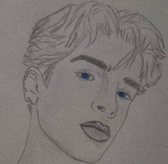 Высокий, кажется, рост его метр восемьдесят пять-семь, я могу немного ошибаться, но рядом. Черные длинные ресницы и густые брови. А волосы светло-русые, довольно красивый парень.