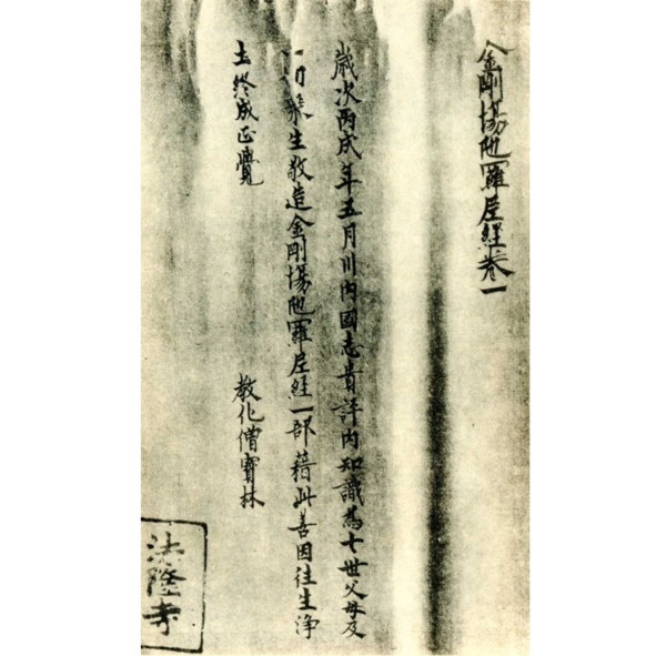 Сутра Конгодзё Дарани-кё является самой старой сутрой, переписанной на территории Японии. Она была переписана в 686 году учениками монаха Хорина в уезде Сики провинции Кавати. По другим данным, она была переписана самим Хорином. Представляет собой свиток размерами 27х670 сантиметров, по стилю написания напоминает стиль Оуян Тона, сына Оуян Сюня (одного из трёх великих каллиграфов Тан), которым выполнена надпись на памятнике монаху Доину.