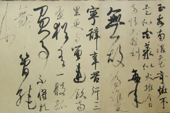 В Китае стиль Дзэн разрабатывался такими каллиграфами, как Су Ши, Хуан Тинцзянь, Ми Фэй и Чжан Цзичжи и основное развитие получил в эпоху Сун. По мнению некоторых исследователей, стиль Дзэн был менее ограничен жесткими стандартами и традициями, чем стиль Синто, был более волевым и свободным. Значительно отличаясь от стиля Ван Сичжи с его мягкими линиями, он казался странным и непривычным.