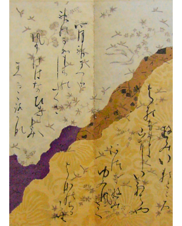 Хорошим примером является сборник 36 поэтов, обнаруженный в хранилище храма Нисихонгагдзи Оогути Сюгё в 1896 году. Стихи были разделены между двадцатью переписчиками, однако достоверно установлены имена только трёх из них. Это Фудзивара-но Митико, Фудзивара-но Сададзанэ и Фудзивара-но Саданобу, которые прославились как придворные каллиграфы.