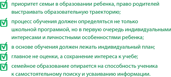 У приверженцев семейного образования есть своя, если можно так сказать, философия. Главными принципами домашнего обучения являются: