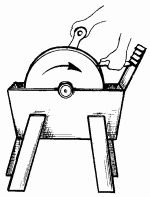 При заточке зубила, стамески, рубанка круглым точильным камнем его направляют навстречу лезвию (рис. 2).