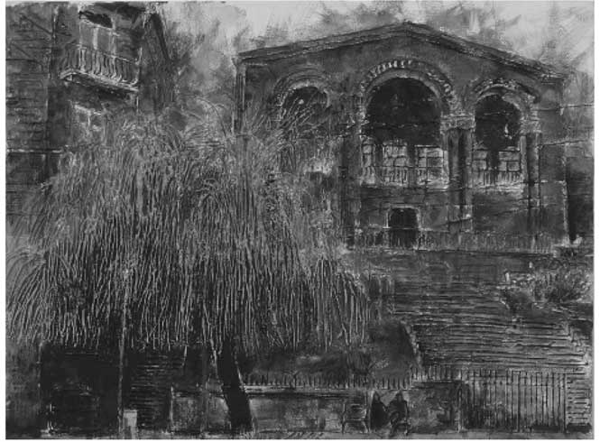 Здесь, конечно, не место подробно напоминать сюжет фильма, который начинает разворачиваться, когда на улицах появляется красный «запорожец» с героем фильма за рулём, следующим на службу, чтобы вступить на свою вахту памяти. Это происходит не в Матендаране, а в обычном районном архиве гражданских состояний, в котором толпы посетителей пытаются выбить справки, способствующие установлению истинных родительских прав или справедливой пенсии. Но и при столь будничных заботах возникают вопросы глобального масштаба. Как добиться равновесия сохранения и позитивного функционирования памяти в дне сегодняшнем (сегодняшнем по-тогдашнему)? Герой не раз оказывается перед гамлетовским выбором личного вмешательства в проблемы временных вывихов. Лучшей современной иллюстрацией искомого равновесного состояния является инсталляция Сергея Параджанова «Ромул и Рем», при всей сравнительной молодости древнеримской цивилизации по сравнению с армянской (но о посещении музея режиссёра и художника чуть позже).