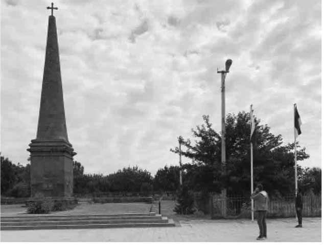 Это 25-метровый обелиск из красного туфа, который символизирует своей формой единство и целеустремлённость. На вершине обелиск увенчан крестом. Памятник был установлен 9 (21) мая 1834 года.