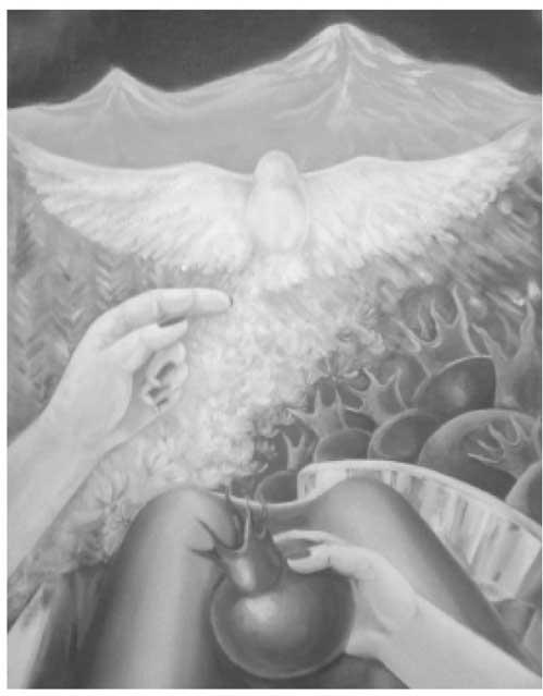 Вдруг умирающему священнику показалось, что он услышал голос Христа и к нему медленно спускается вместе с ангелами сам Господь Бог. Он узнал одного ангела, это был его спаситель – русский офицер-кавалерист… Ангел-спаситель обнял его, и они осторожно подняли его, и все вместе улетели сквозь купол церкви… Когда они поднимались, Петрос заметил, что на стенах монастыря выступают большие капли крови… Ему показалось, что расстреляли не его, а монастырь…