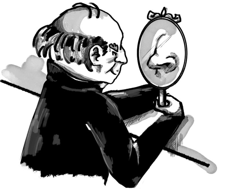 Чтобы действительно увериться, что он не пьян, майор ущипнул себя так больно, что сам вскрикнул. Эта боль совершенно уверила его, что он действует и живёт наяву. Он потихоньку приблизился к зеркалу и сначала зажмурил глаза с тою мыслию, что авось-либо нос покажется на своём месте; но в ту же минуту отскочил назад, сказавши: