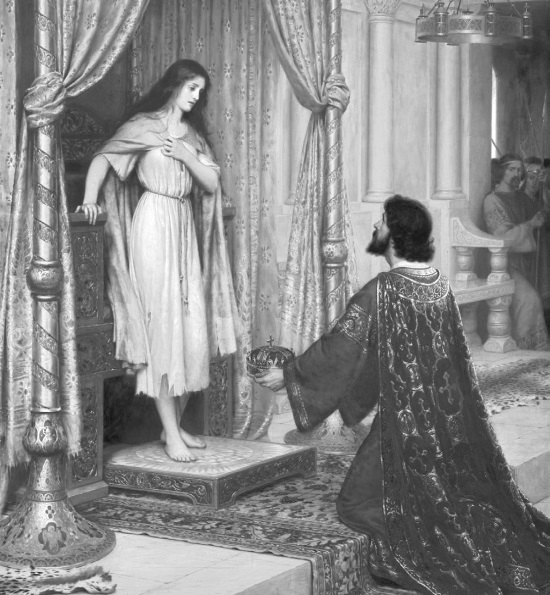 Кузнец подошел ближе, взял ее за руку; красавица и очи потупила. Еще никогда не была она так чудно хороша. Восхищенный кузнец тихо поцеловал ее, и лицо ее пуще загорелось, и она стала еще лучше».