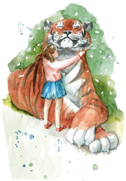– Пошли гулять, – засмеялась девочка и легонько дёрнула тигра за усы.